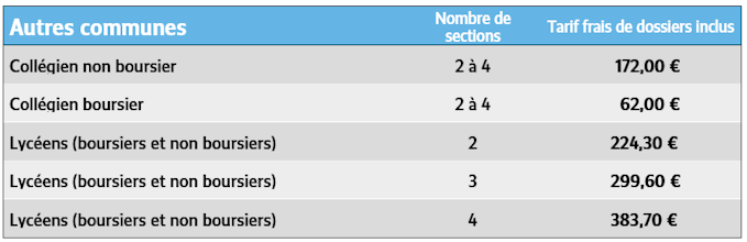 • Os pais devem enviar-nos um pagamento por cheque no valor correspondente ao número de secções a pagar à KEOLIS (tabela abaixo):