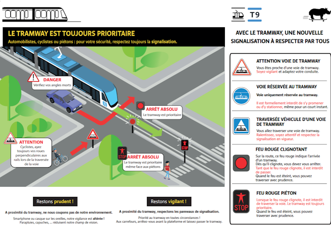 Tenha cuidado ao redor do bonde, ele pesa até 30 rinocerontes. Aqui estão algumas instruções a seguir para sua segurança ao viajar perto dos trilhos do bonde.