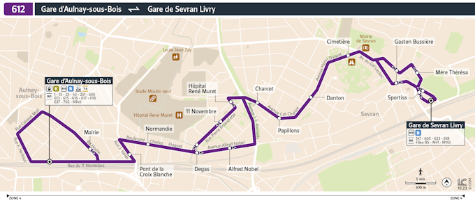 A linha 612 é uma nova linha que liga a Gare d'Aulnay-sous-Bois à Gare de Sevran Livry através do distrito de Rougemont e do centro da cidade de Sevran!