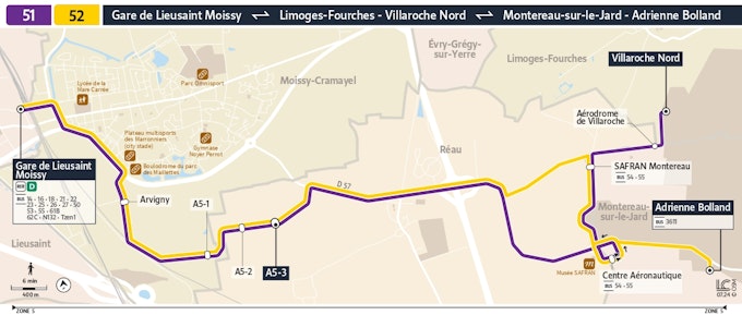 - Os horários das linhas 51 e 52 adaptaram-se às chegadas e partidas dos funcionários da empresa nas paragens "Parc A5", "Centre Aéronautique" e "SAFRAN Montereau"