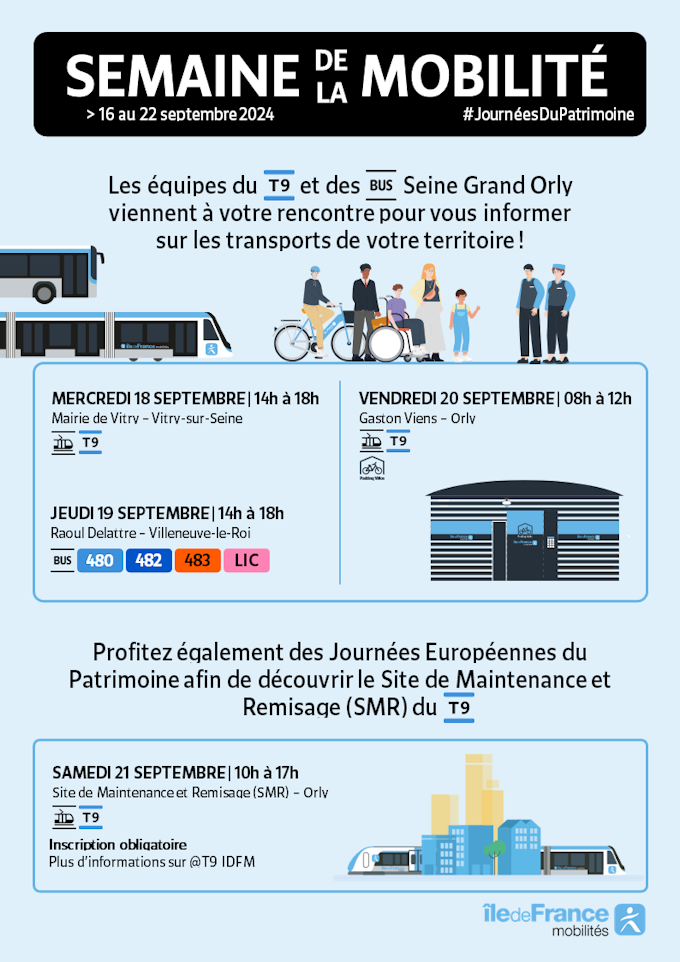 Venha conhecer as equipas do T9 e as linhas do território do Sena Grand Orly por ocasião da Semana Europeia da Mobilidade, de 16 a 22 de setembro de 2024.