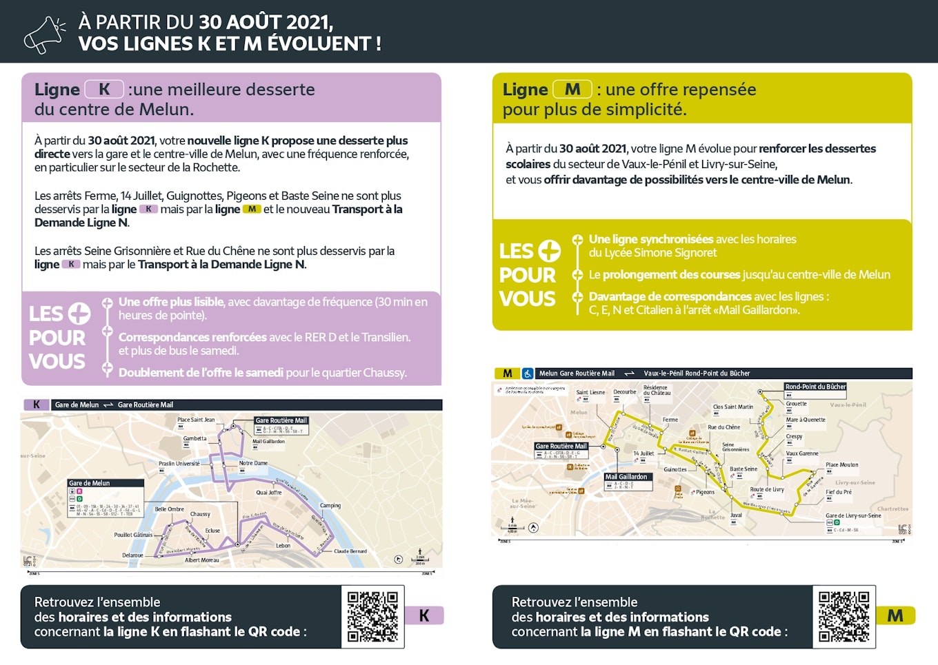 A linha K agora oferece um serviço melhor para o centro de Melun. A linha M foi redesenhada para maior simplicidade.