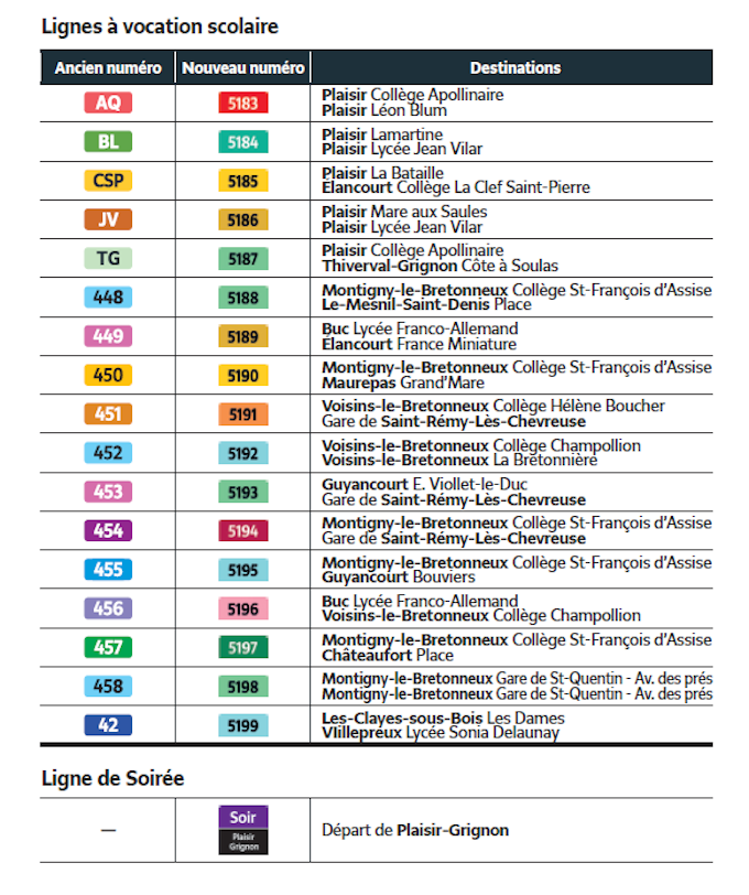 Os ônibus de Saint-Quentin-en-Yvelines se beneficiarão dessa nova numeração.