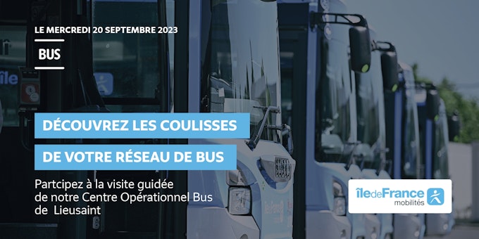 Por ocasião do Dia Europeu do Patrimônio e da Semana da Mobilidade entre 16 e 20 de setembro de 2023, sua rede de ônibus Île-de-France Mobilités na área de Sénart convida você para uma visita guiada ao Centro Operacional de Ônibus em Lieusaint (77)!