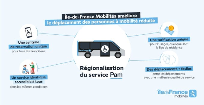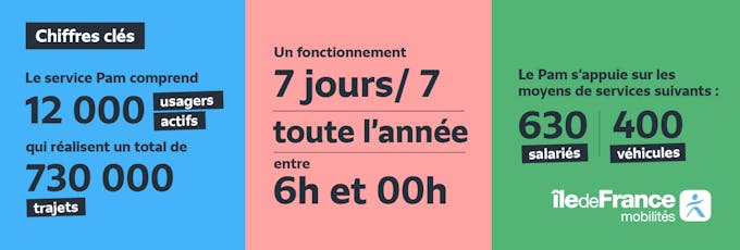 À medida que os departamentos entram no sistema, o centro de serviço Pam na região de Ile-de-France torna-se o ponto de contato preferencial para todos os seus pedidos de informação, mas também para registrar ou reservar uma viagem.