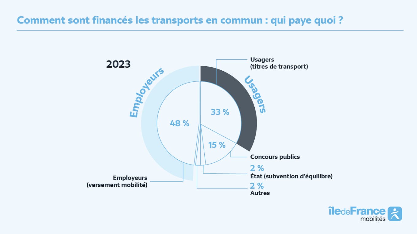 Hoje, o orçamento operacional para o transporte na Île-de-France é de mais de 10 bilhões de euros por ano, que é financiado pelas empresas Ile-de-France, passageiros, concorrência pública e pelo Estado.
