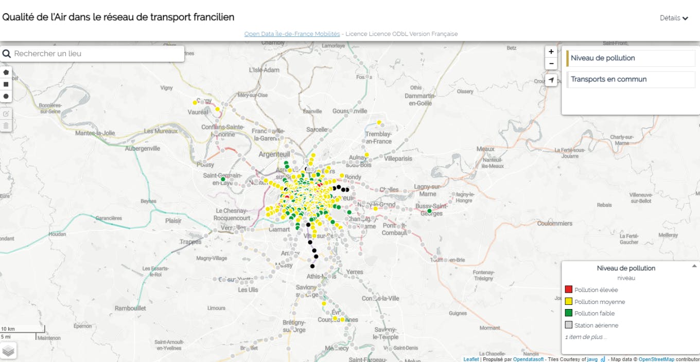 Depois de publicar em outubro de 2023 um mapa da qualidade do ar e das emissões de partículas PM10 de 44 estações subterrâneas de metrô e RER, a Île-de-France Mobilités publicou em setembro de 2024, graças ao trabalho ágil e inovador do AirParif, um mapa da qualidade do ar de todas as estações subterrâneas da rede Ile-de-France, disponível em acesso aberto em dados abertos (com base nas recomendações da ANSES).